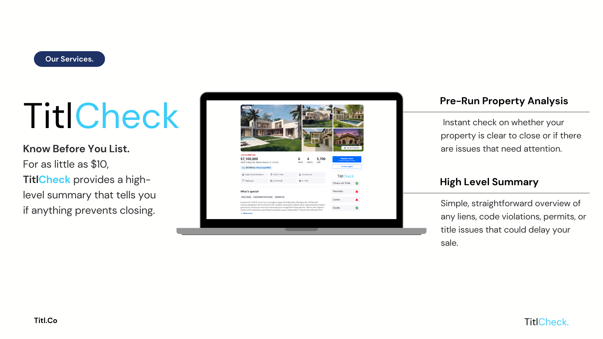 Titl empowers you to close deals faster and with greater confidence. By providing clean titles and streamlining the closing process, you can reduce transaction times, improve client satisfaction, and increase your commission potential.